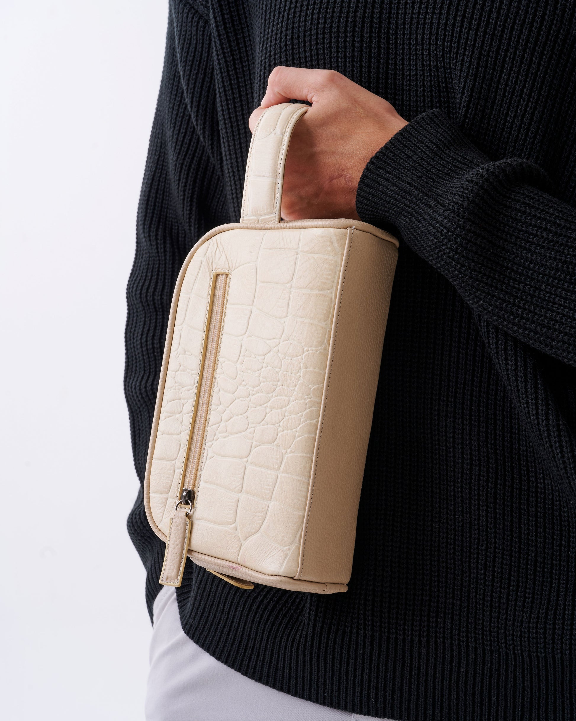 Handmade Clutch Bag High-Quality Leather Handbag - Beige